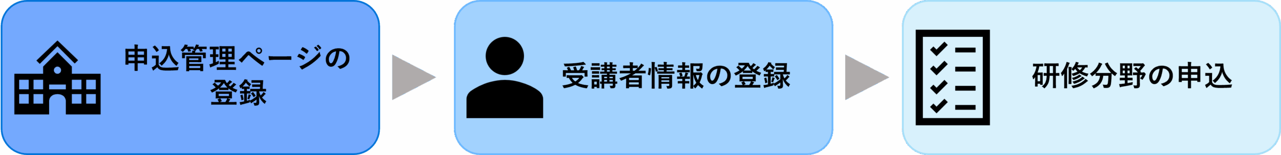 ■ 研修の申込手順は下記の通りです。 ※研修申込マニュアルをお読みいただきながら、操作してください。