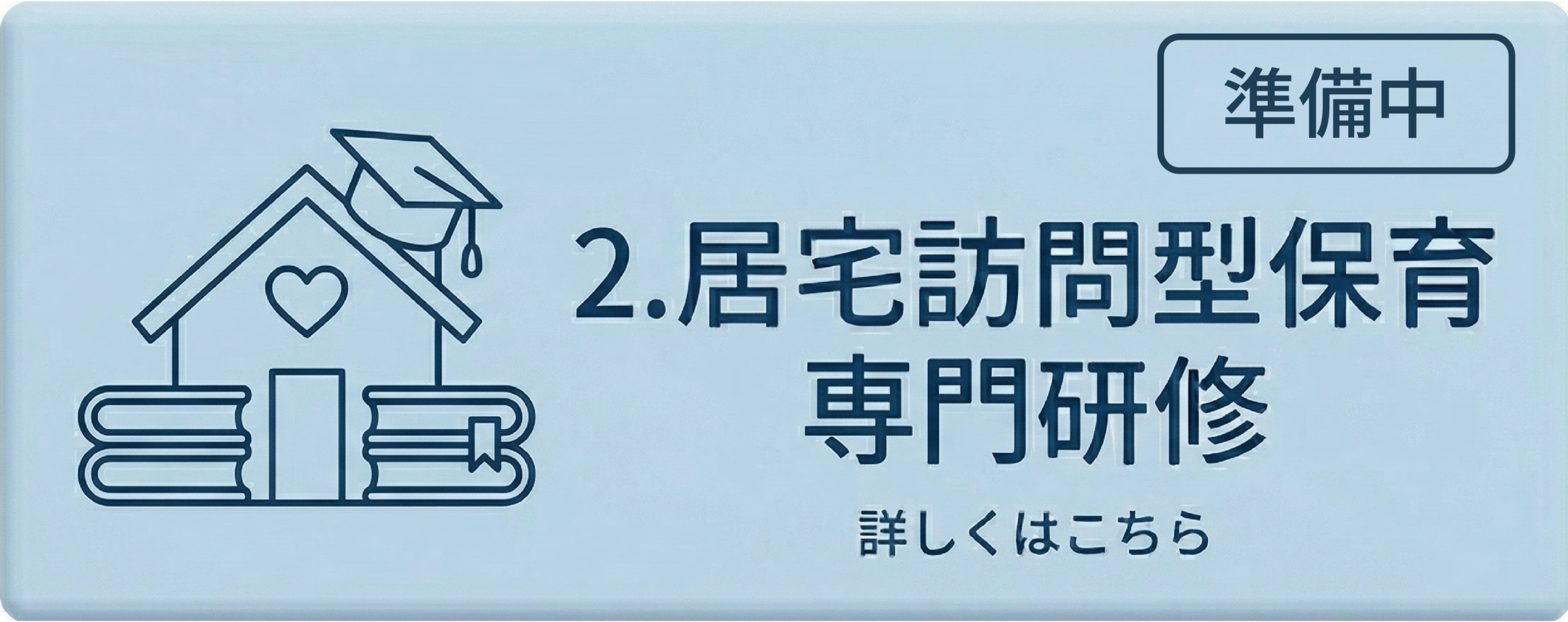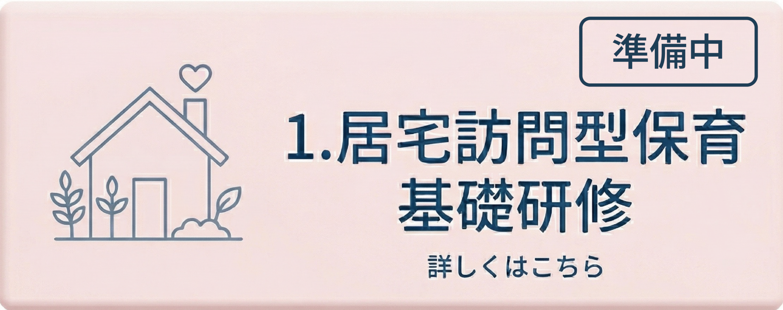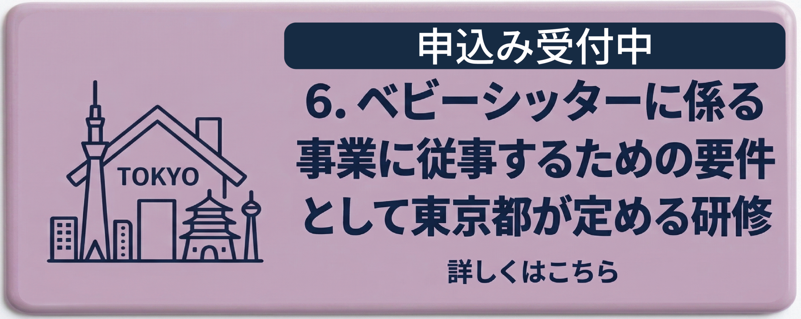 令和8年度東京都委託事業 東京都 居宅訪問型保育 研修 ー 研修内容およびお申込み方法のご案内 ーこちらは東京都居宅訪問型研修専用Webページです 新着情報 居宅訪問型保育事業に係る各種研修のお申し込み受付中です<2026.4.8 更新> ■ 各研修の内容について 【お問い合わせ先】 株式会社 ポピンズプロフェッショナル 東京都研修係 〒150-0012 東京都渋谷区広尾5-6-6 お問い合わせフォーム:https://forms.gle/jQ8yWtYdbyucubFg8